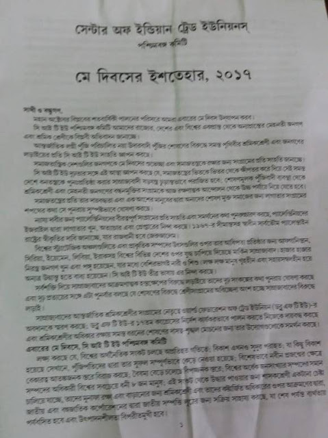 occasion of "May Day". Com. Dipak Dasgupta, General Secretary, CITU,