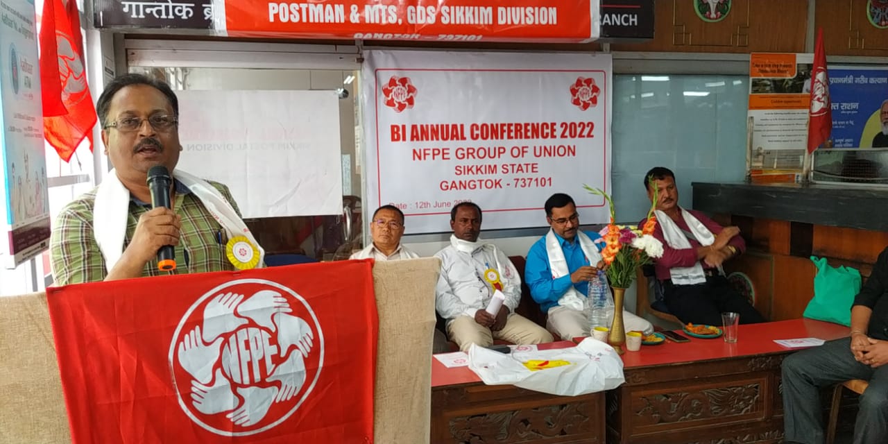 Biennial joint divisional conference of AIPEU, Group-C, Postmen & MTS and GDS (NFPE) of Sikkim Division is held today (12.6.2022) at Gangtok Head Post Office.